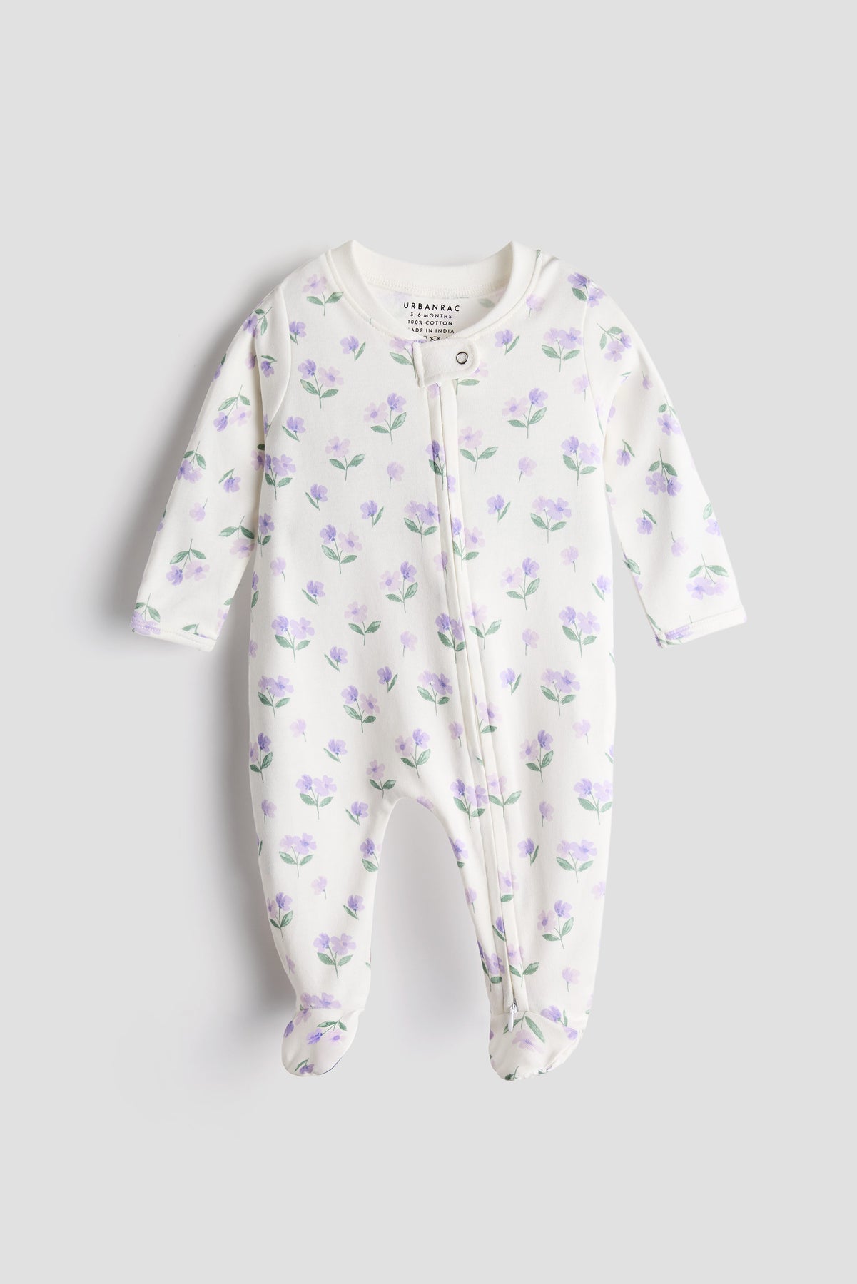 100% Cotton Baby Zipper Sleepsuit with Feet | Babies Sleepwear | Floral